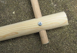 Drill a small pilot hole where the dowels meet. Using a 1-inch screw, secure the two pieces together.